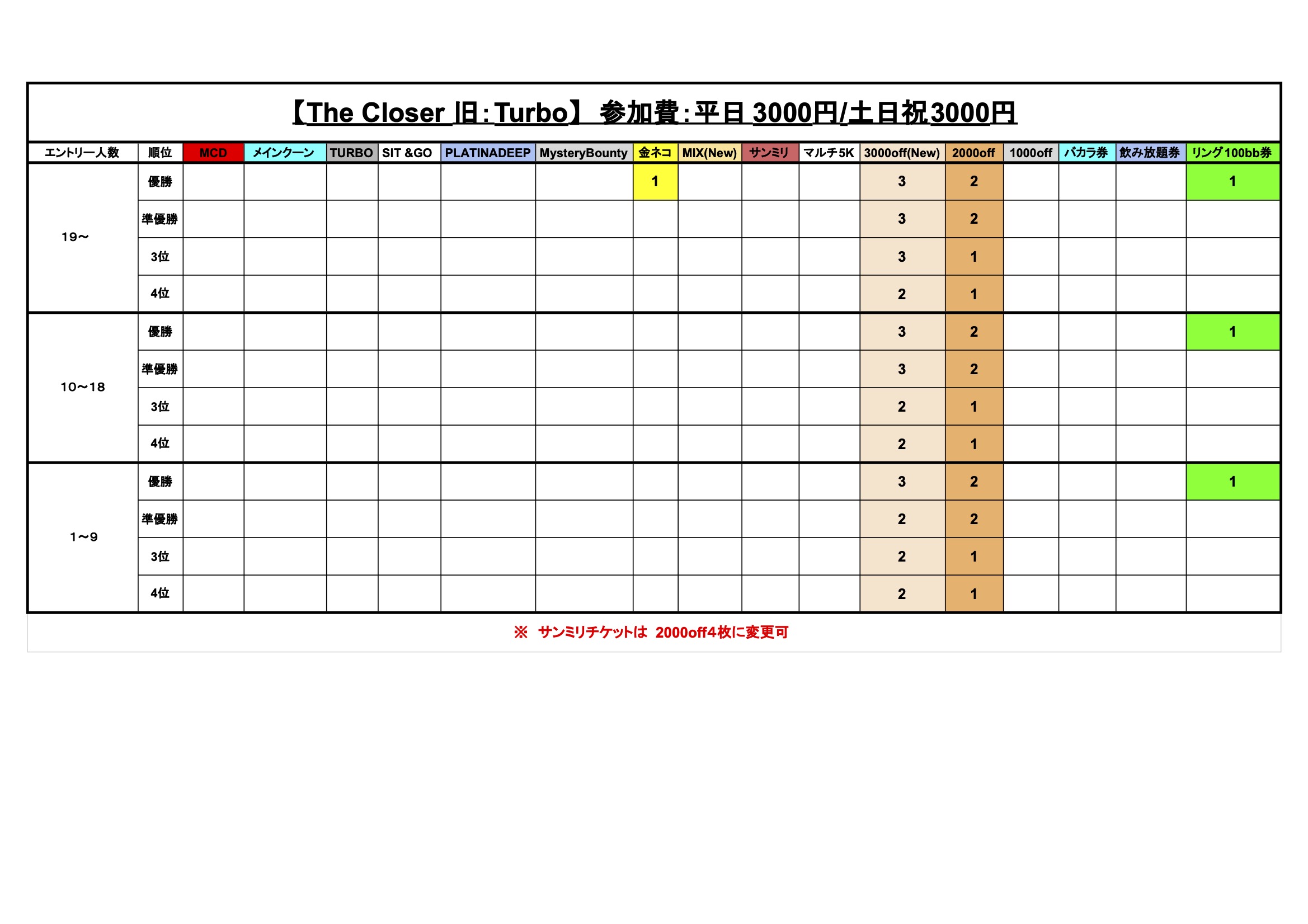♡3000円off/2000円off/1000円offクーポン・・・トーナメント/リングゲーム3000円/の2000円/1000円割引としてご利用いただけます(sit&goは使用不可)