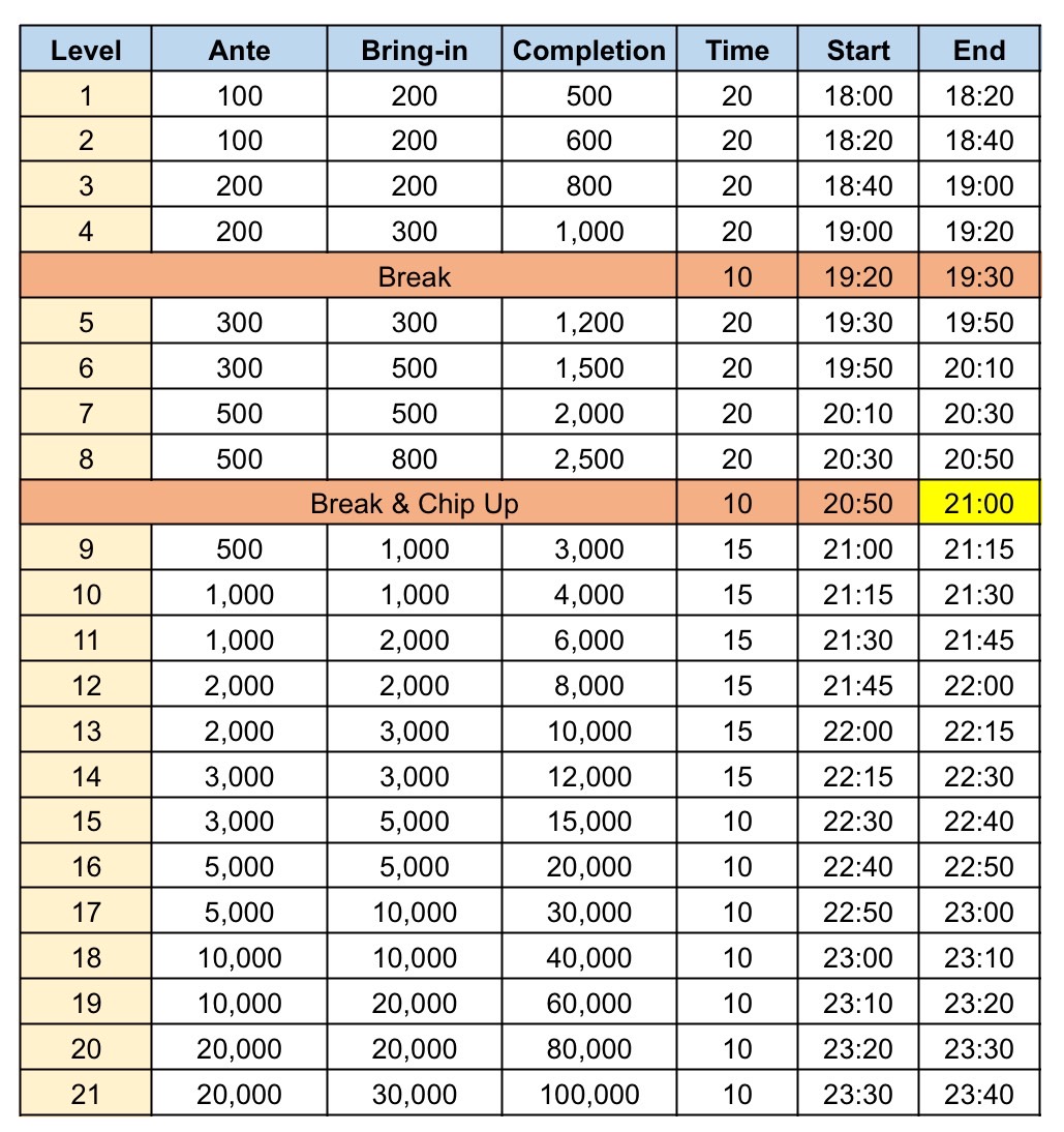 レイト:21時00分(レベル8まで)