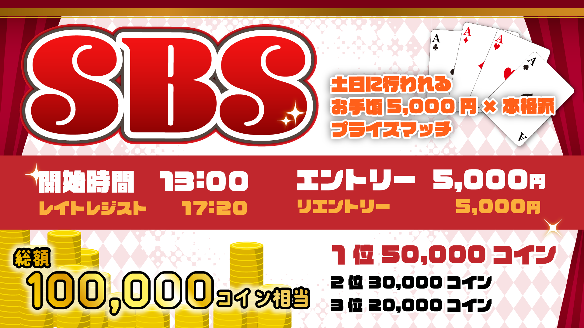 | ゲーム | 40,000点 / ノーリミット / テキサスホールデム / Long / Point |