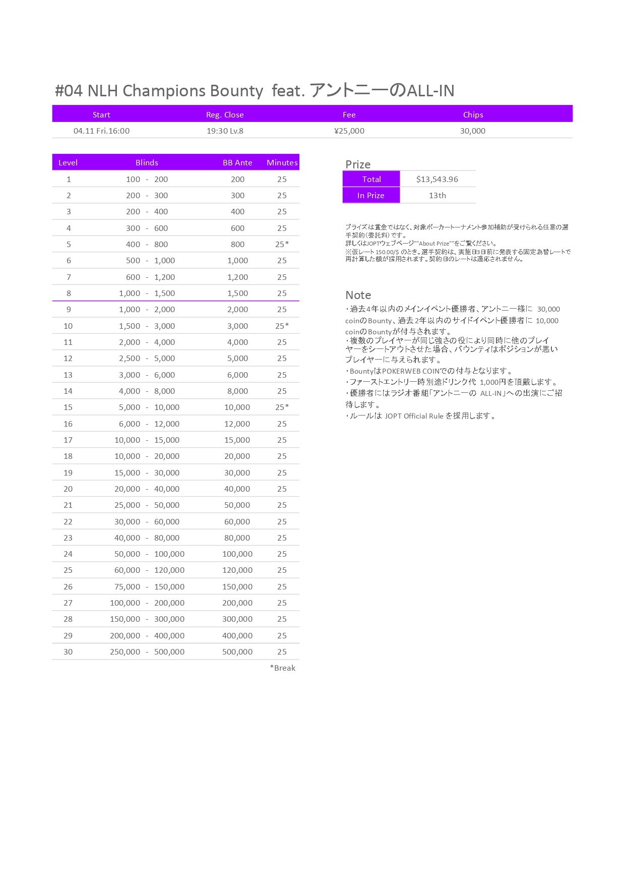 3. Main Event参加プレイヤーとサイドイベントの上位プレイヤーは、氏名を関連するサイト等で公開することに同意する。