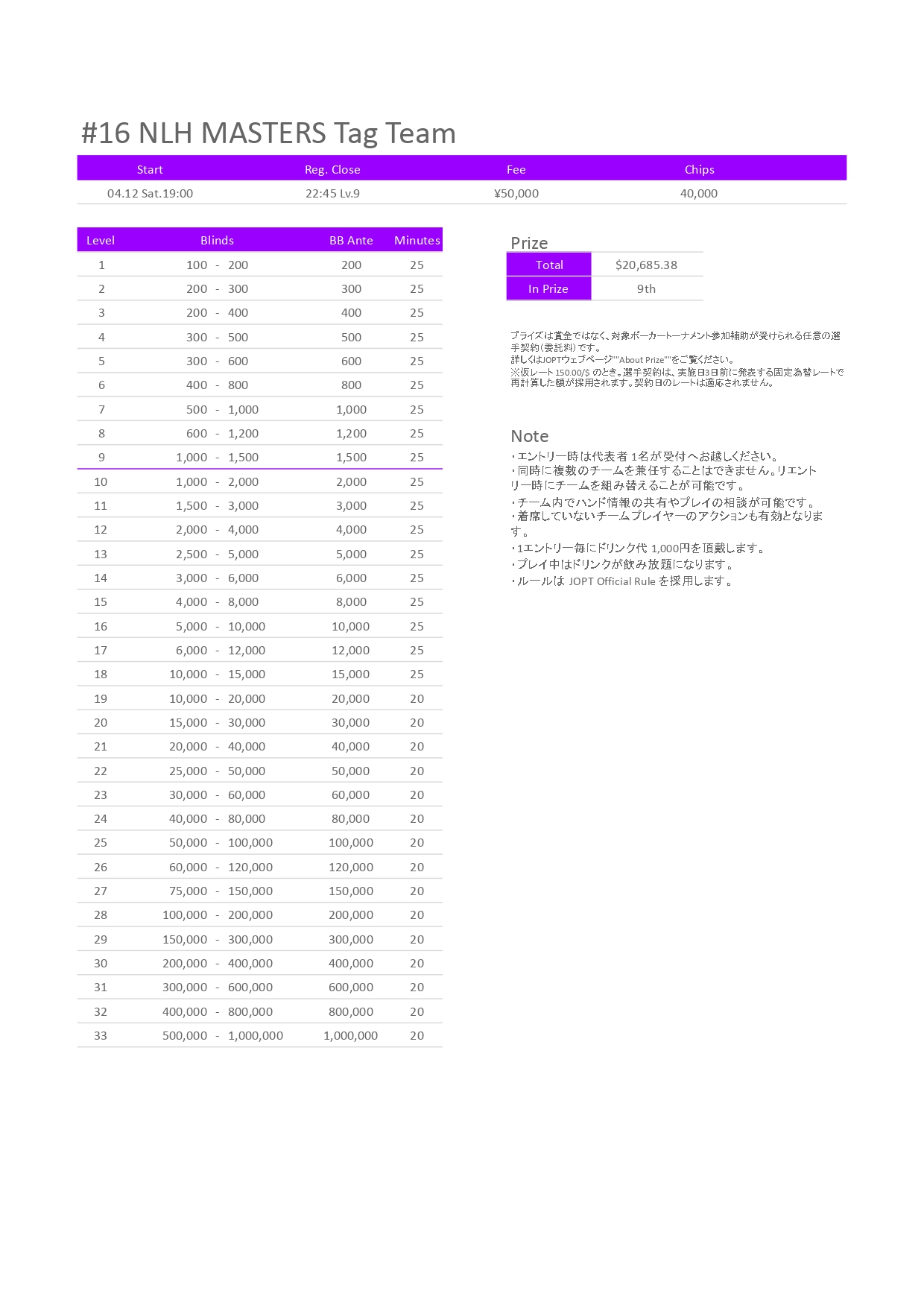 ★Tournament Start : 19:00