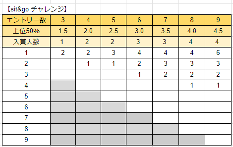 Sit&Goチャレンジは毎週火曜日と木曜日に3-9名の参加希望者が集まり次第開催されるsit&go形式のトーナメントです。