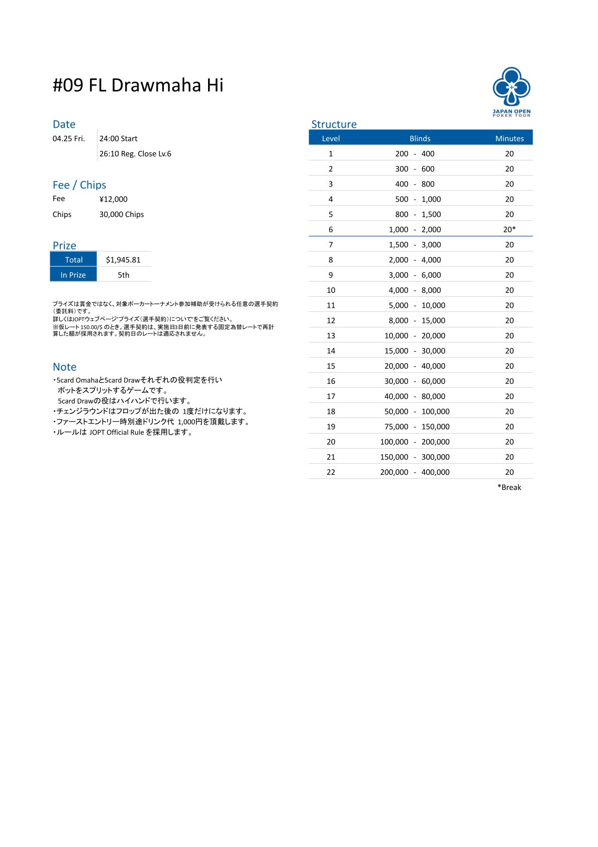 | 店舗名 | JAPAN OPEN POKER TOUR |