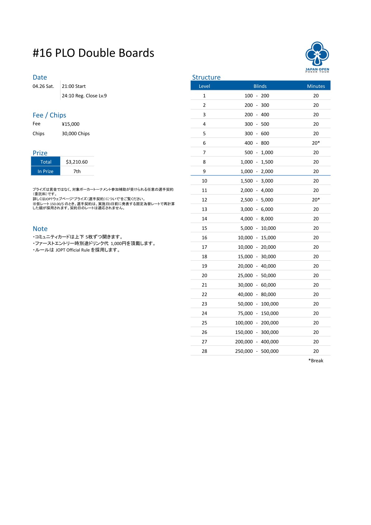 | 店舗名 | JAPAN OPEN POKER TOUR |