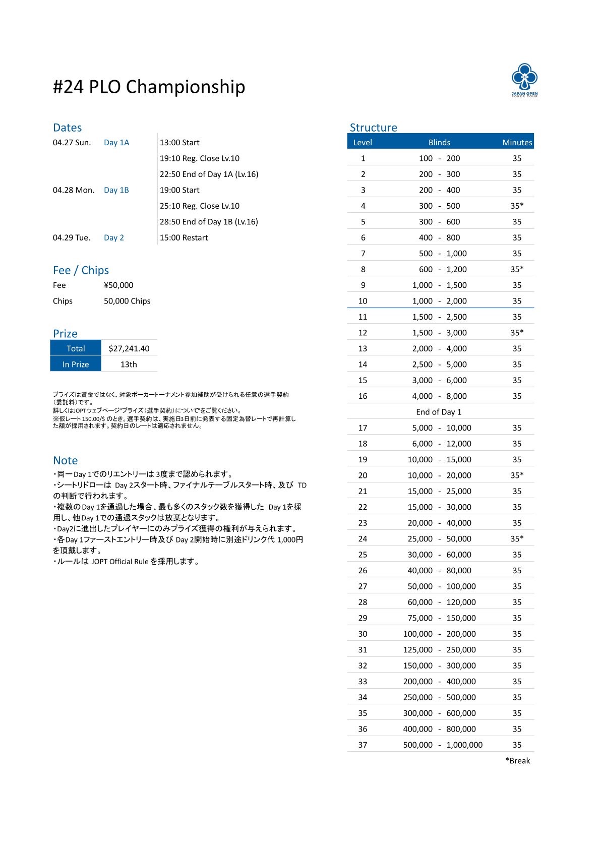 | 店舗名 | JAPAN OPEN POKER TOUR |