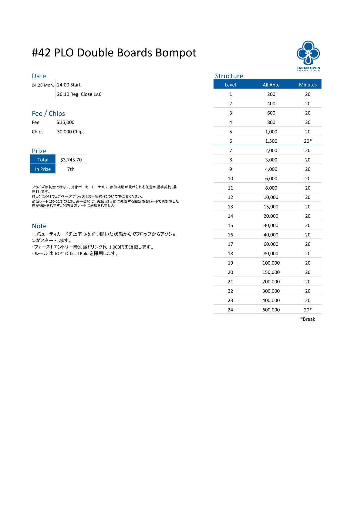 | 店舗名 | JAPAN OPEN POKER TOUR |