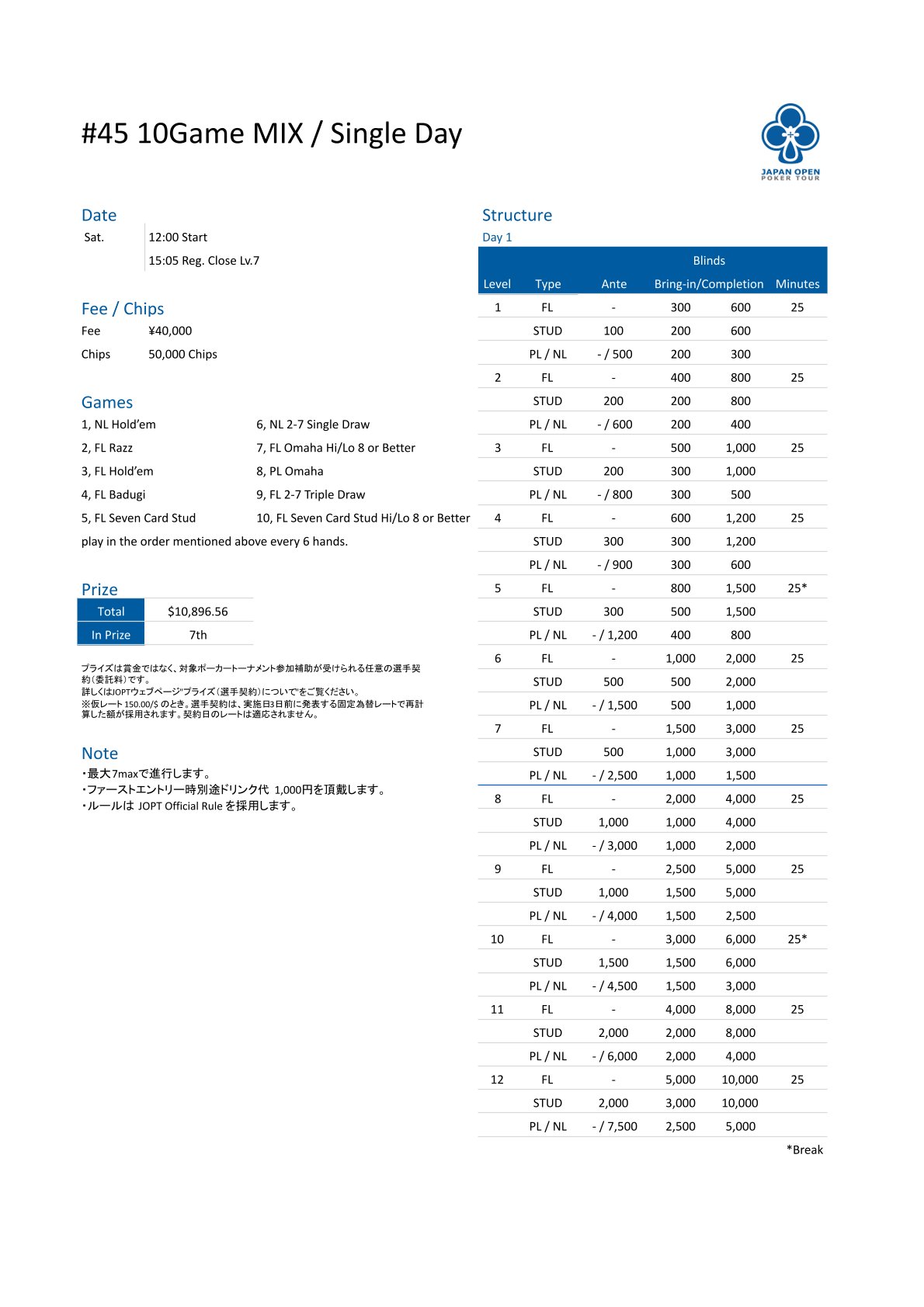 | 店舗名 | JAPAN OPEN POKER TOUR |