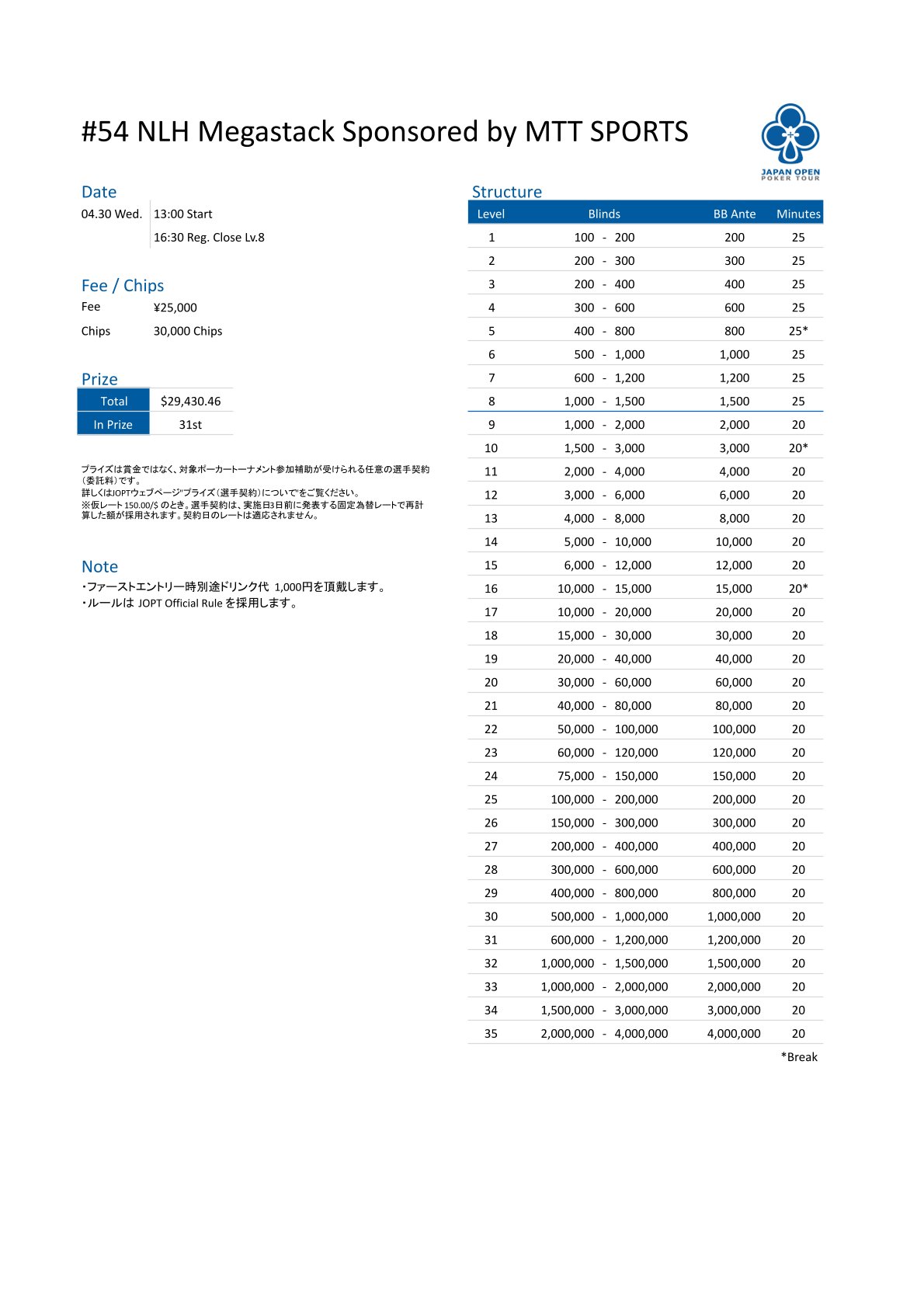 | 店舗名 | JAPAN OPEN POKER TOUR |