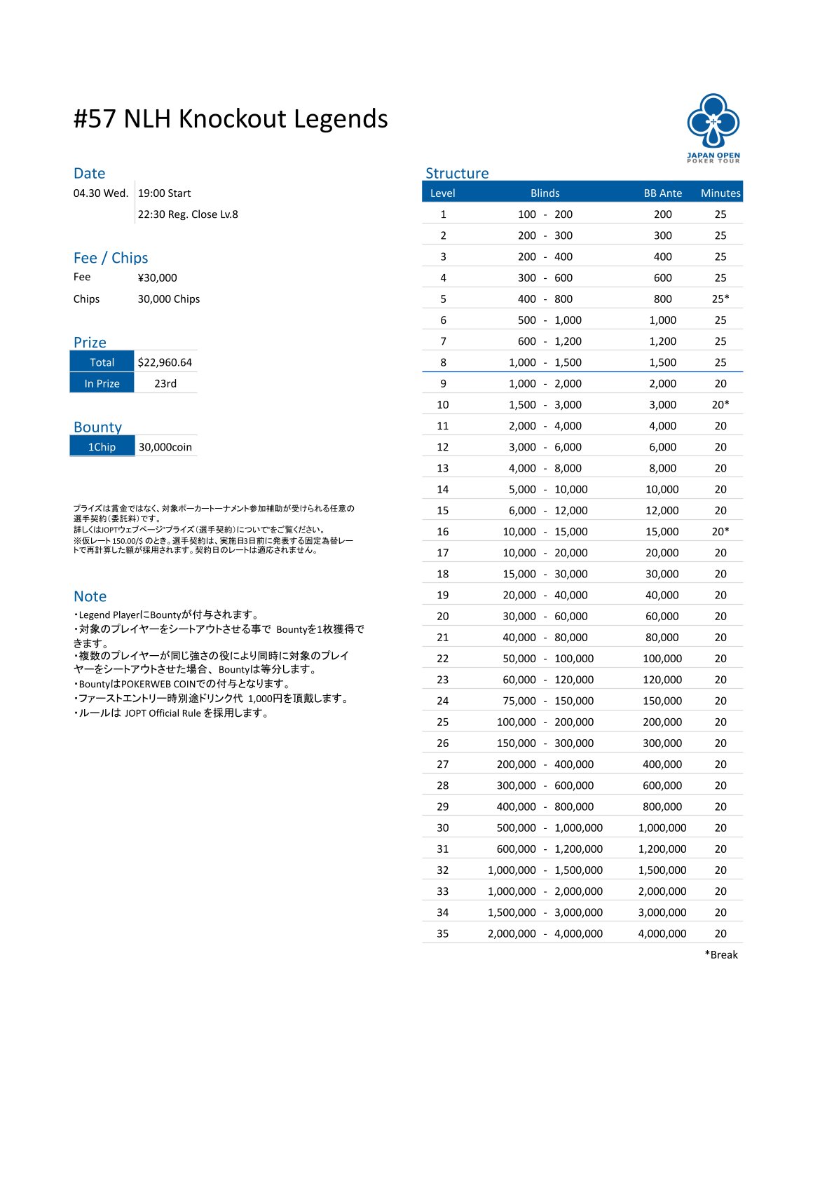 | 店舗名 | JAPAN OPEN POKER TOUR |