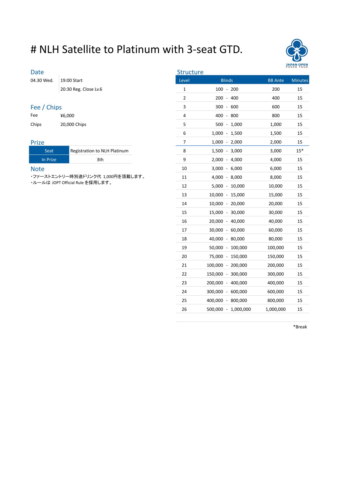 | 店舗名 | JAPAN OPEN POKER TOUR |