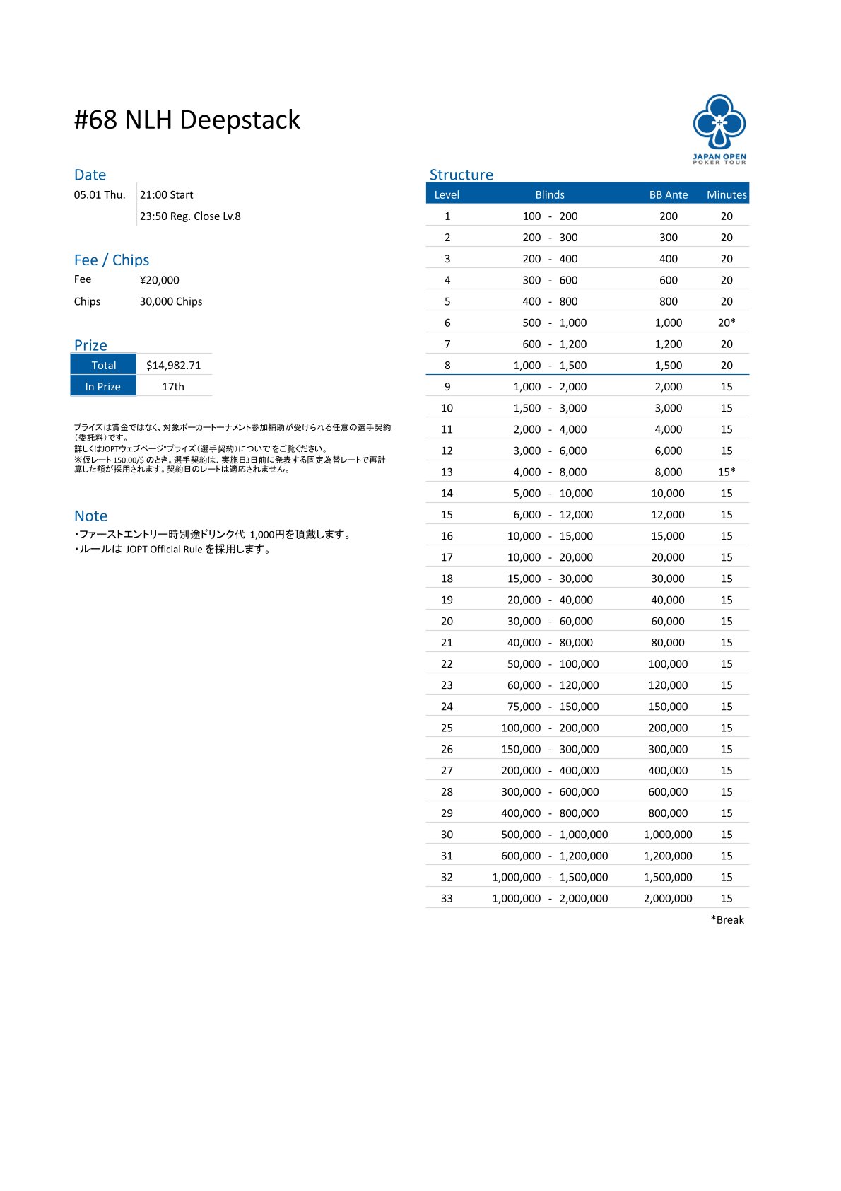 | 店舗名 | JAPAN OPEN POKER TOUR |