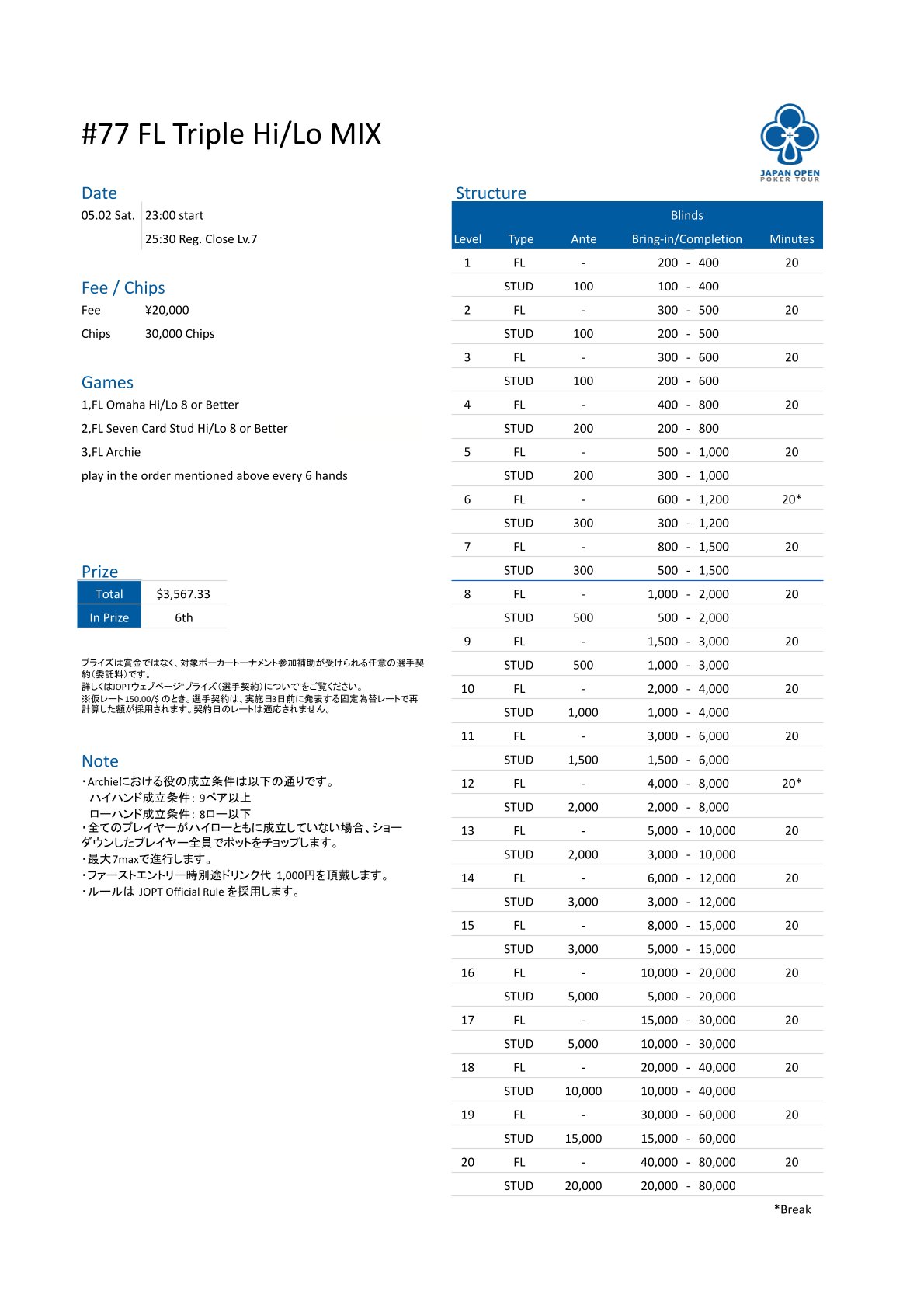 | 店舗名 | JAPAN OPEN POKER TOUR |