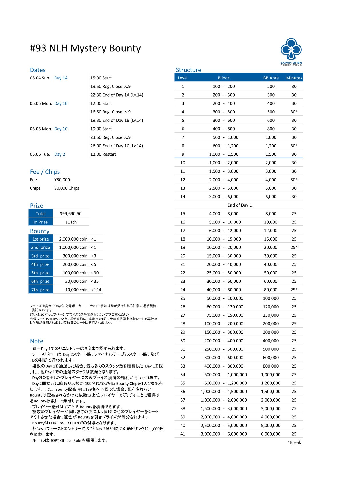 | 店舗名 | JAPAN OPEN POKER TOUR |