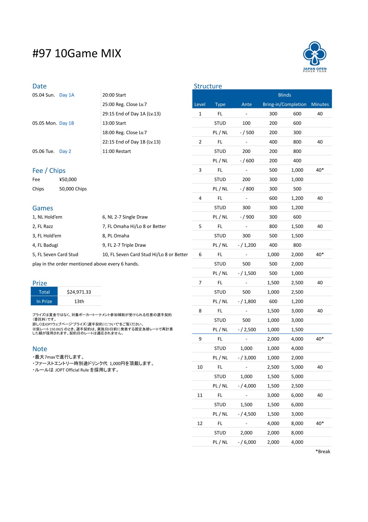 | 店舗名 | JAPAN OPEN POKER TOUR |