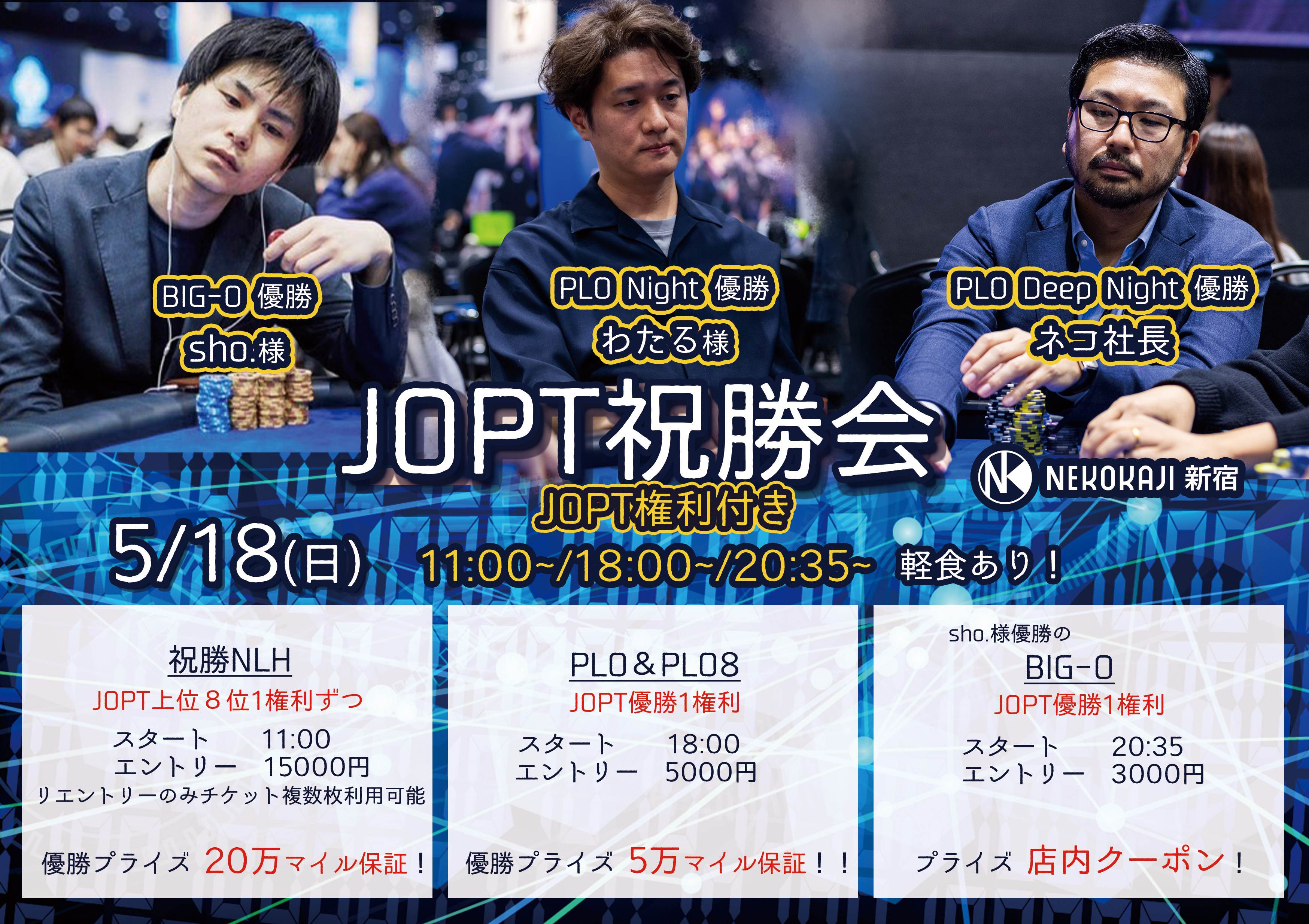 【JOPT権利付き】【マイルプライズマッチ】JOPT祝勝会〜NLH〜