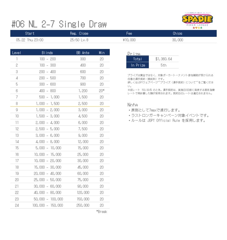 | 12/16(火) | 15:30 | 【♠︎SPADIE】Daily NLH 2K | 秋葉原カジノクエスト |