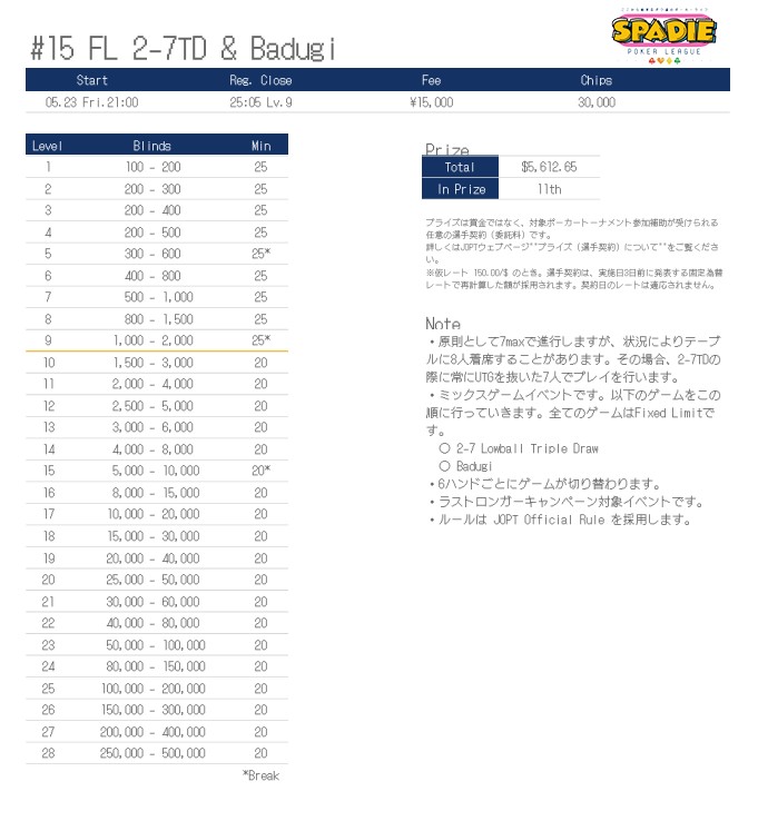 | 12/16(火) | 15:30 | 【♠︎SPADIE】Daily NLH 2K | 秋葉原カジノクエスト |