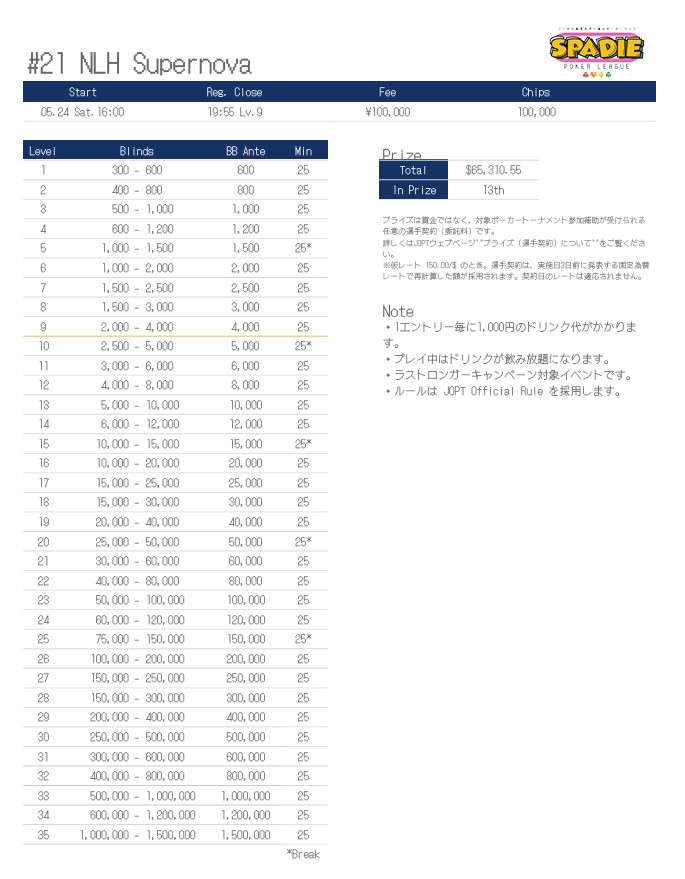 | 店舗名 | JAPAN OPEN POKER TOUR |