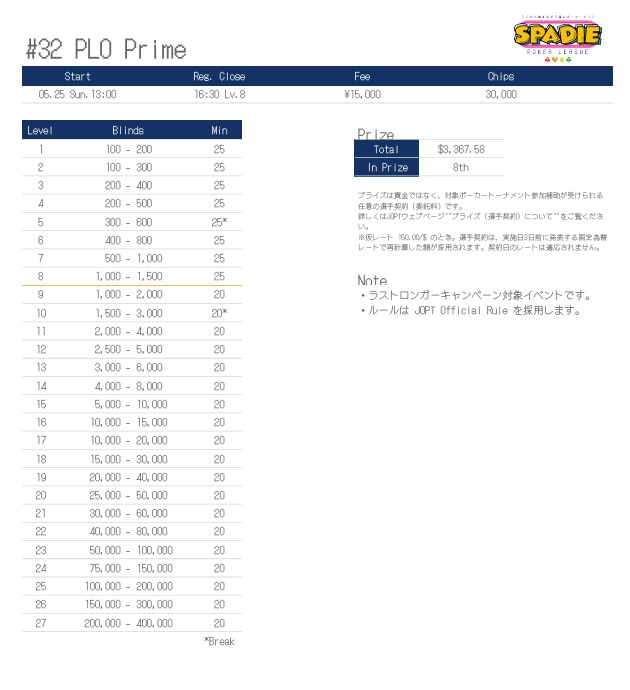 | ゲーム | 30,000点 / ポットリミット / オマハ / normal / Others |