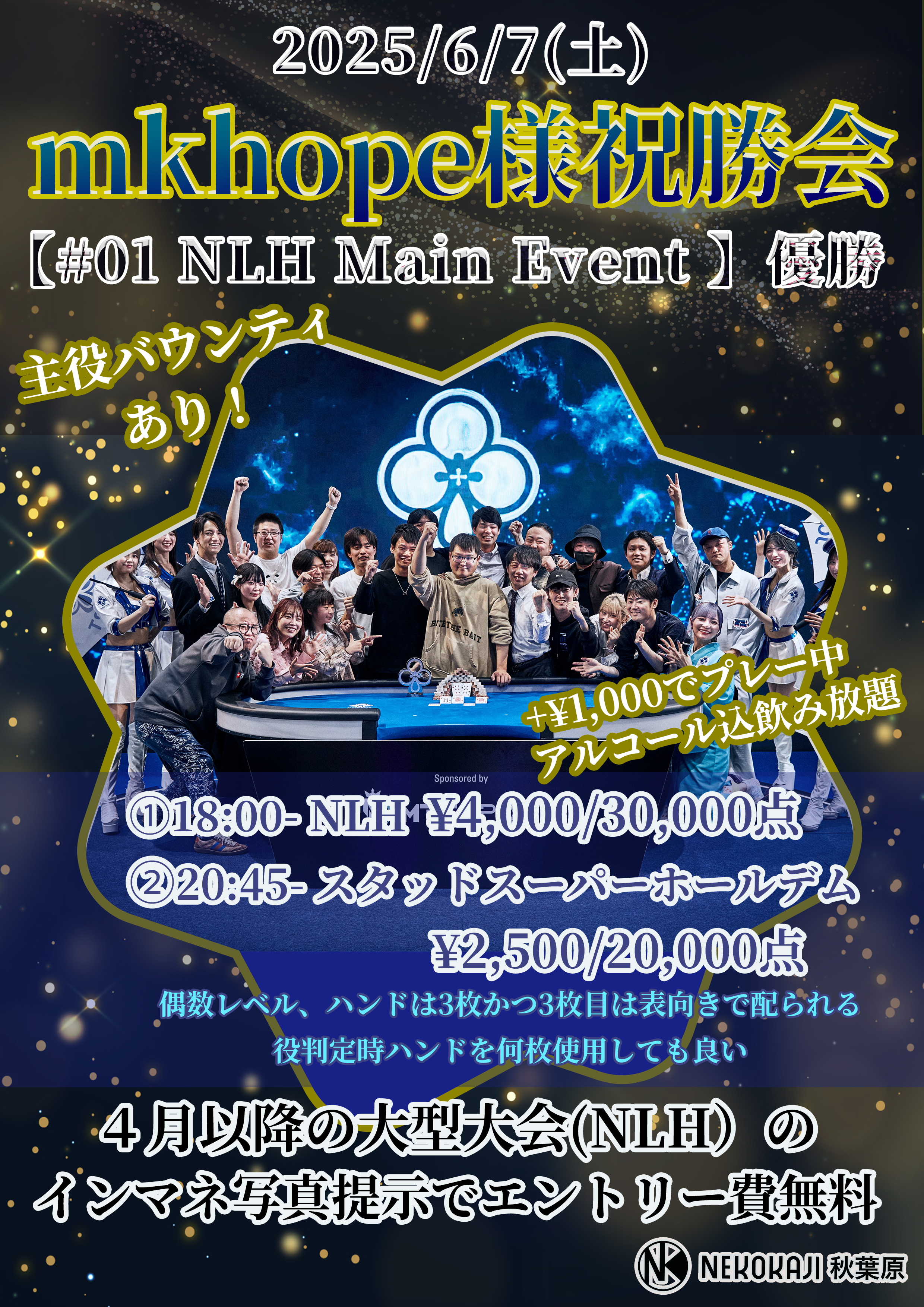 4月以降の大型大会(NLH)のインマネ写真提示でエントリー費無料