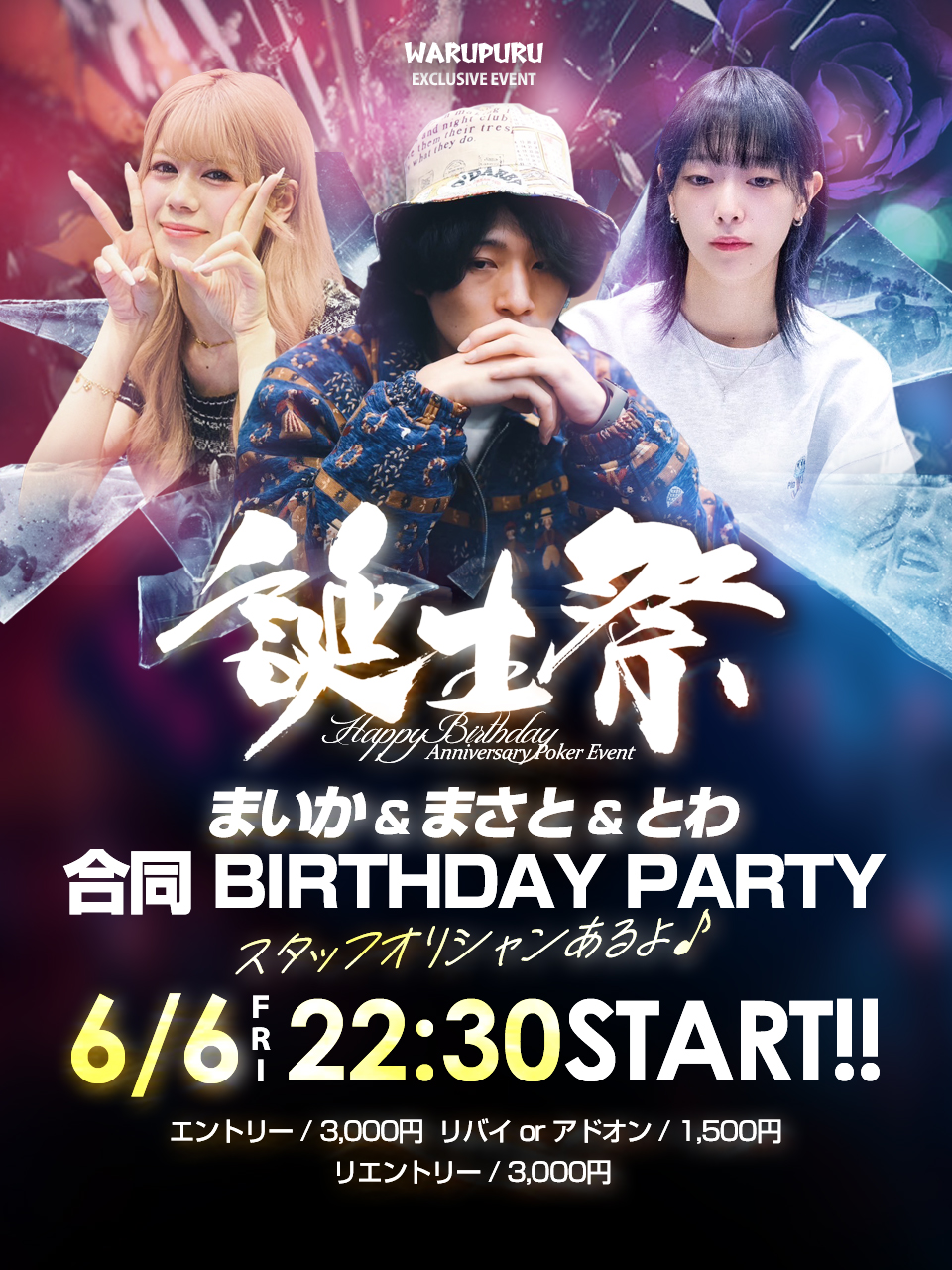 本日はスタッフまさと、まいか、とわの合同birthdayお祝いトーナメントです♪