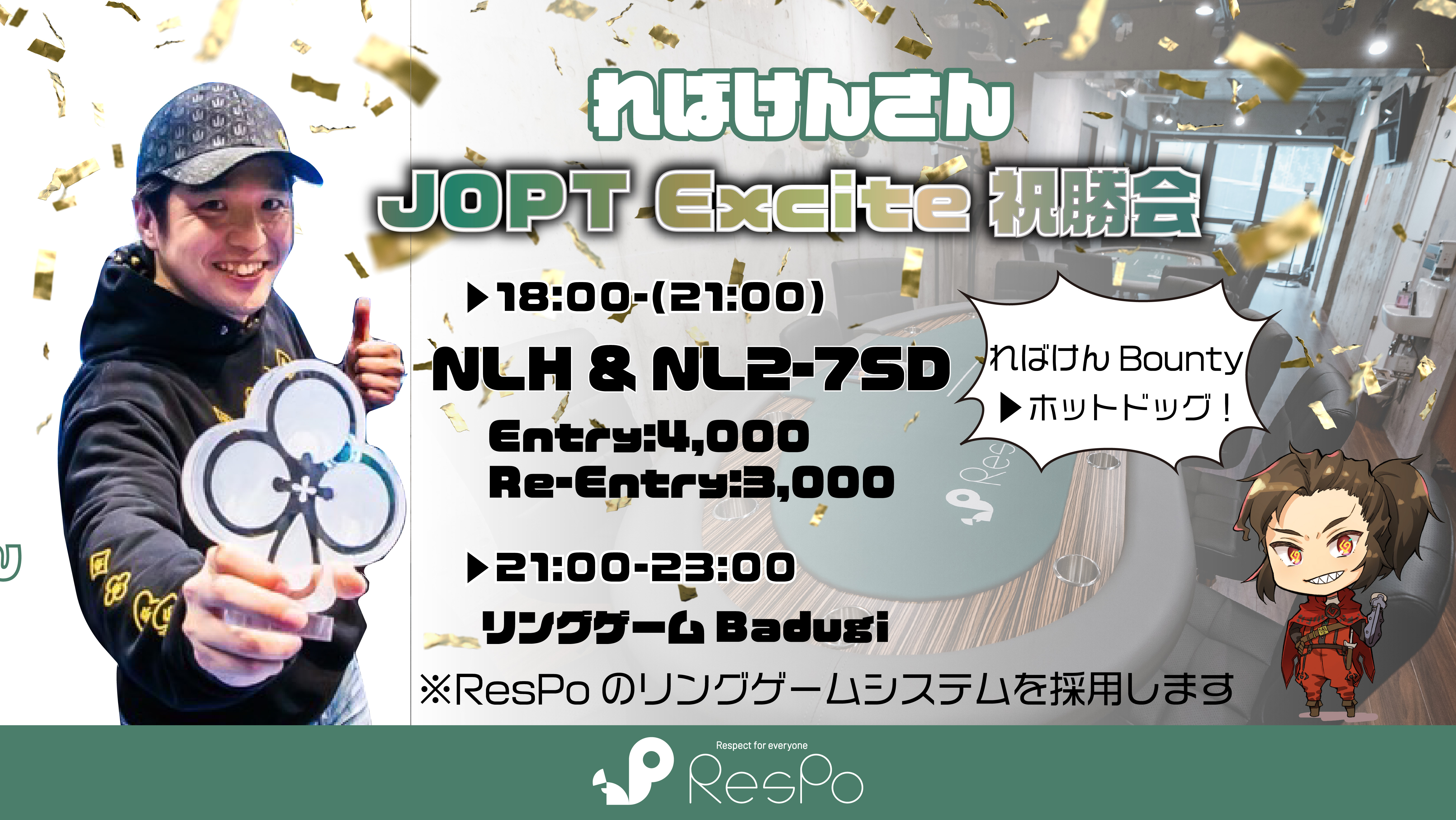 | 12/15(月) | 16:00 | 【JOPT】1000円で参加できる1卓限定 サテライト | EGP EBISU |