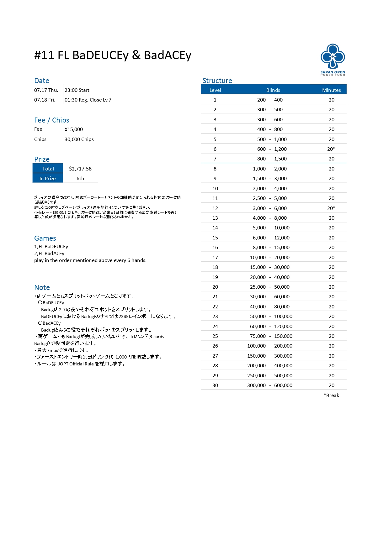 | 店舗名 | JAPAN OPEN POKER TOUR |