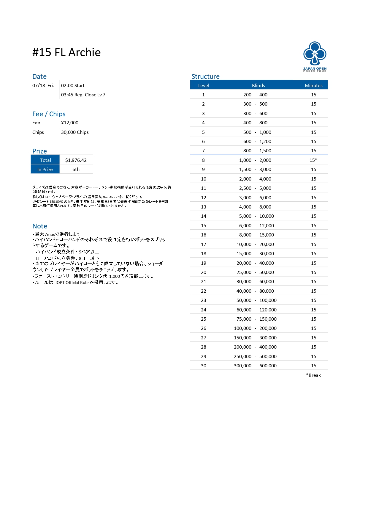 | 店舗名 | JAPAN OPEN POKER TOUR |