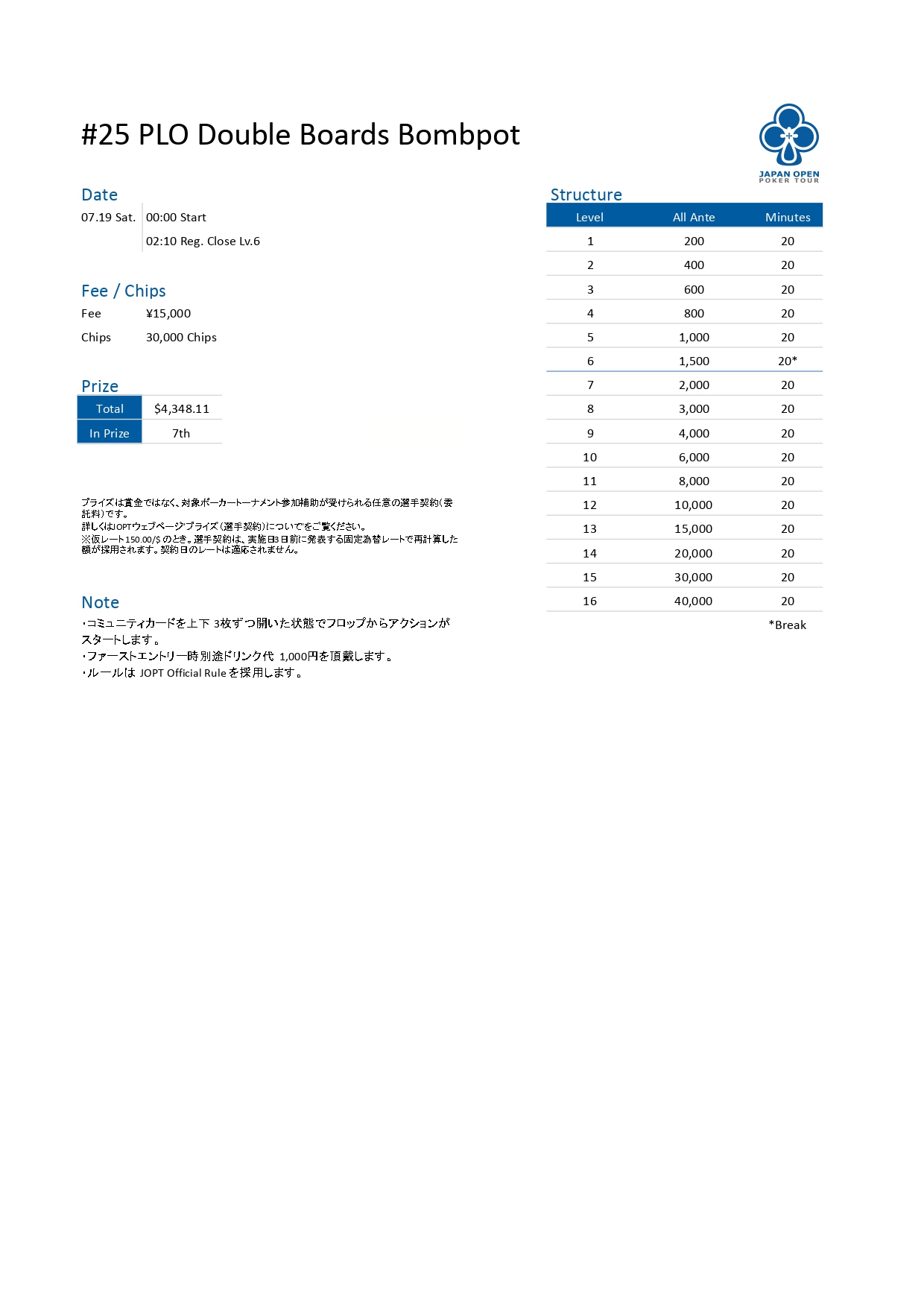 | 店舗名 | JAPAN OPEN POKER TOUR |
