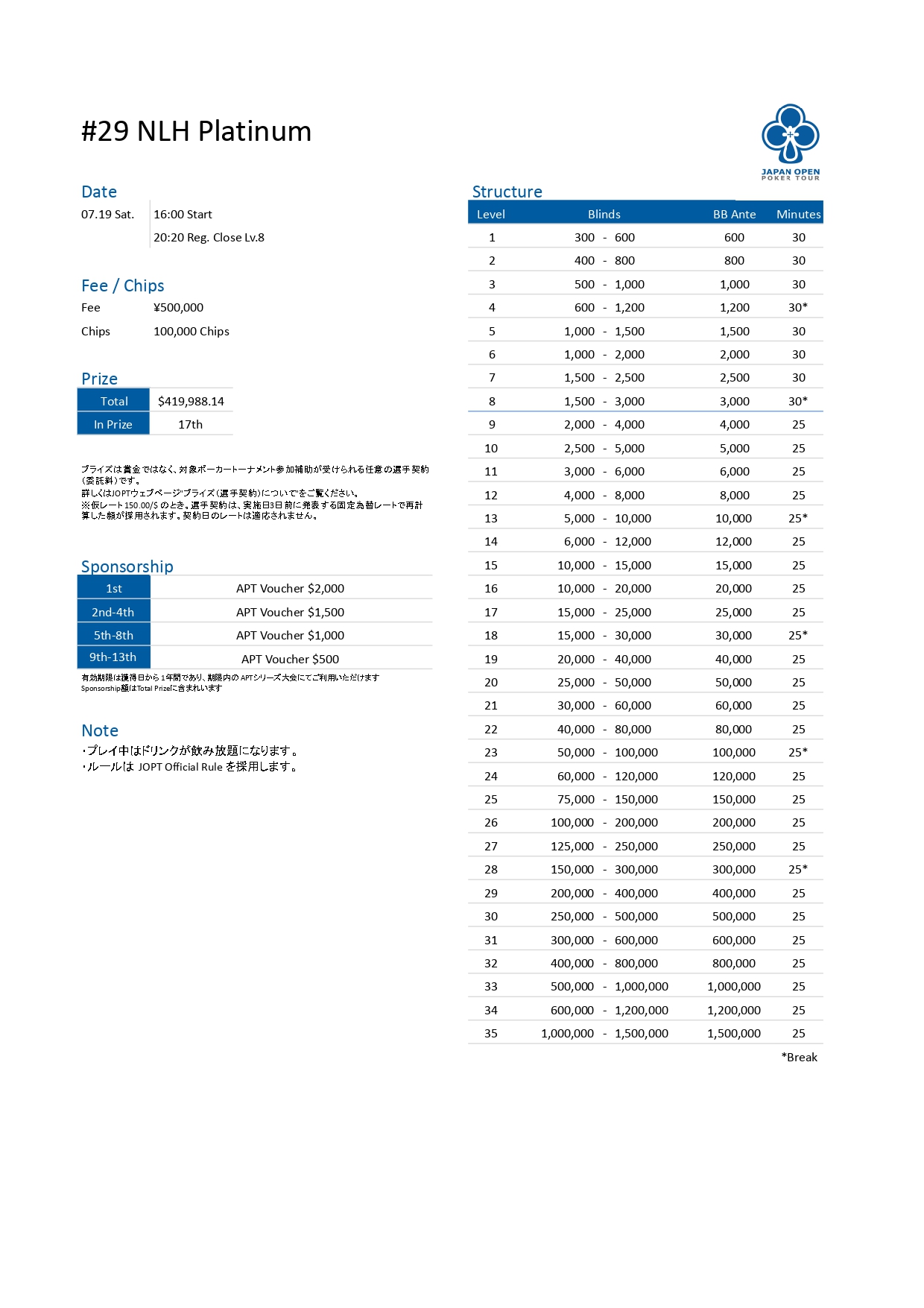 | 店舗名 | JAPAN OPEN POKER TOUR |