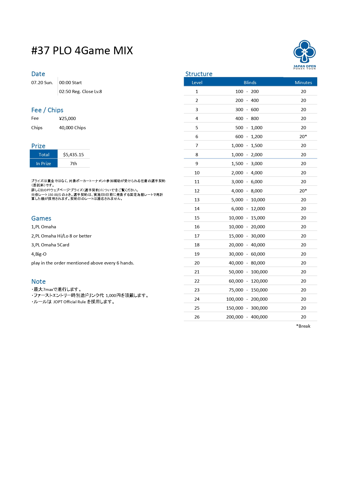 | 店舗名 | JAPAN OPEN POKER TOUR |