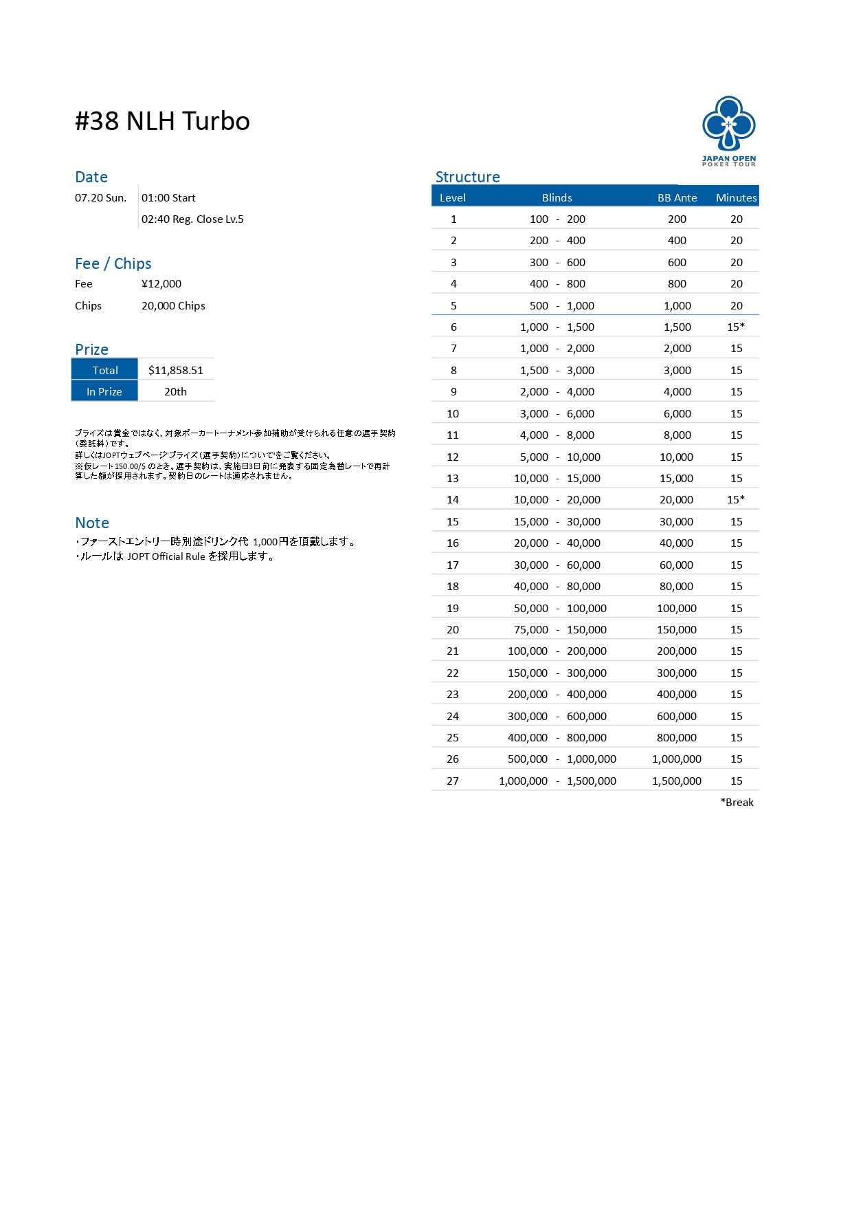#38 NLH Turbo【JOPT 2025 Tokyo #02】