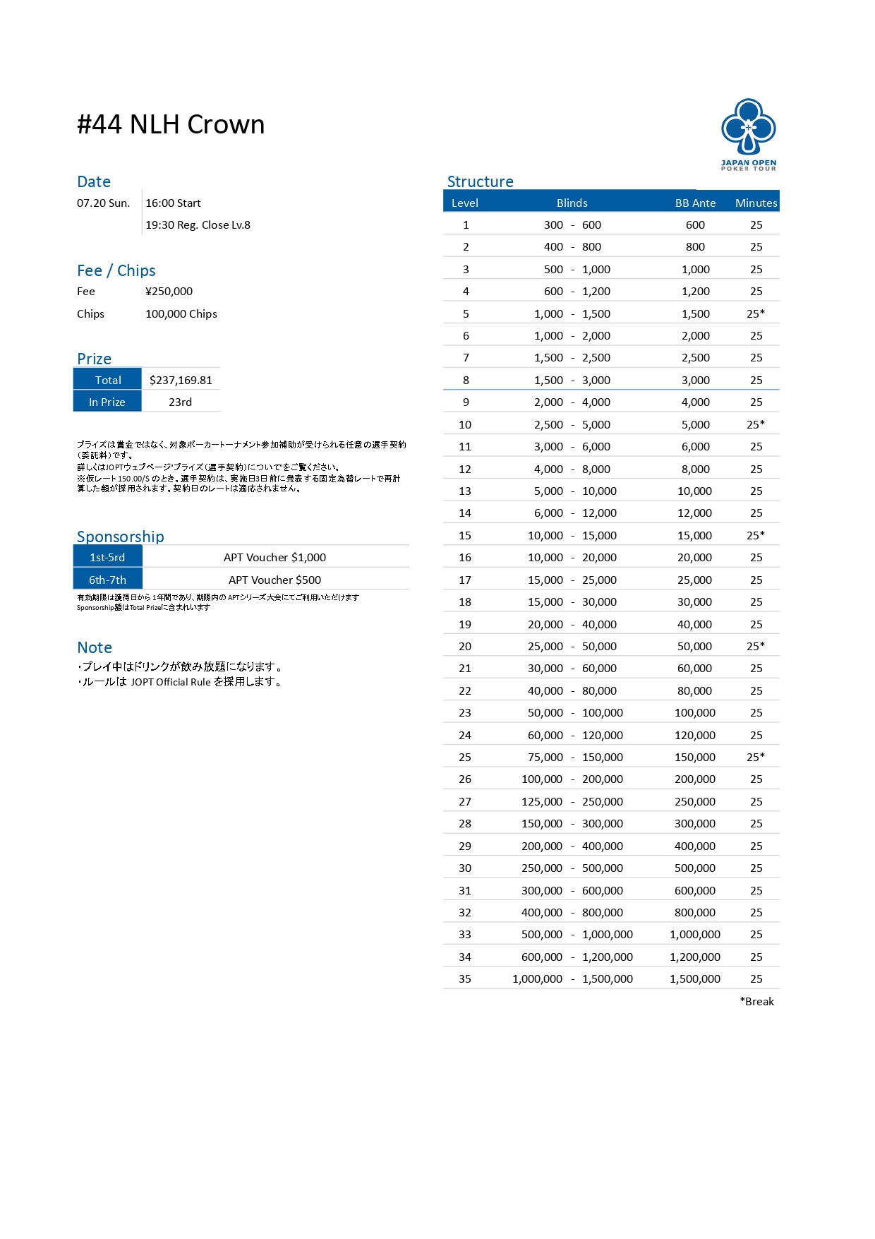 | 店舗名 | JAPAN OPEN POKER TOUR |