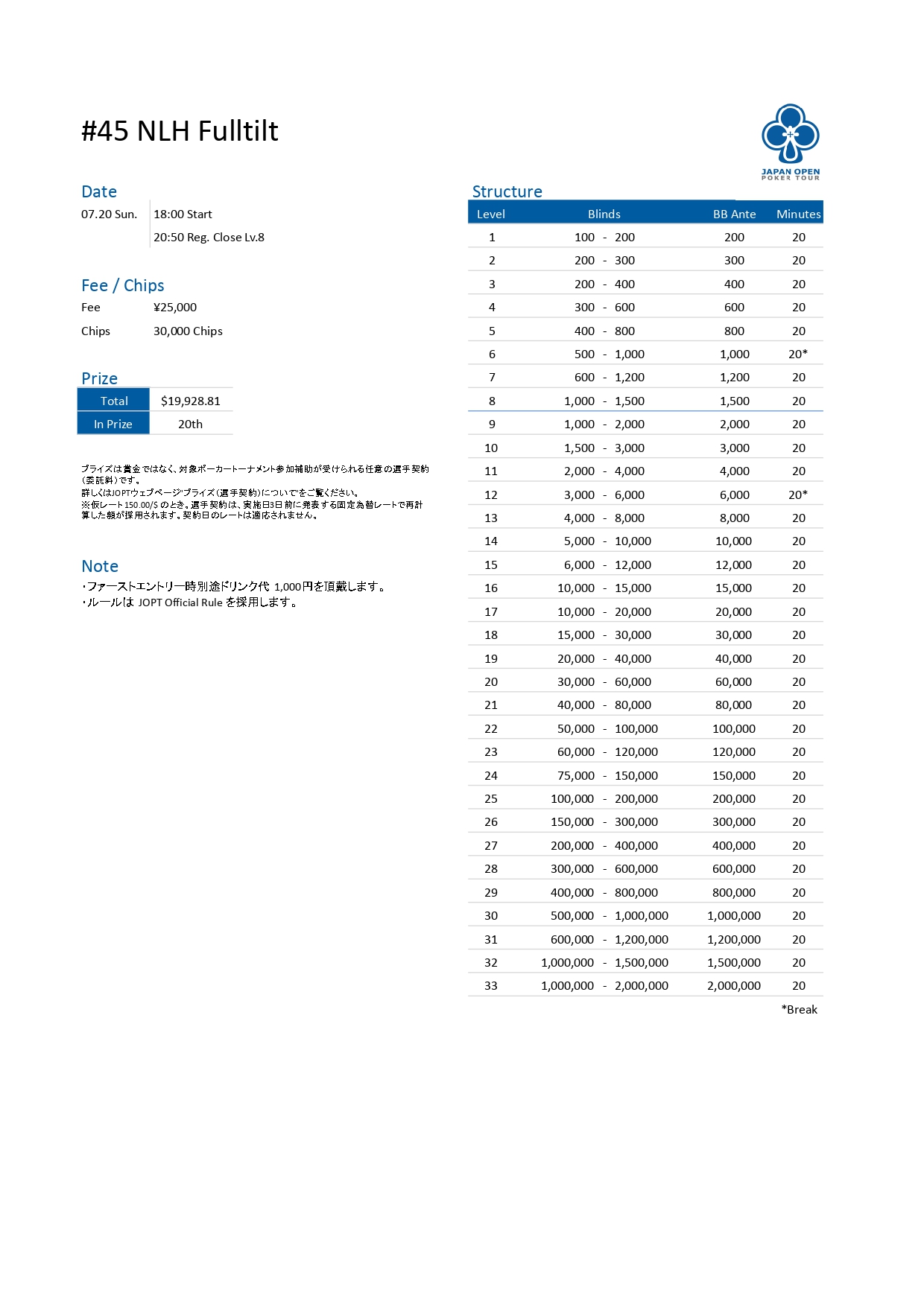 | 店舗名 | JAPAN OPEN POKER TOUR |