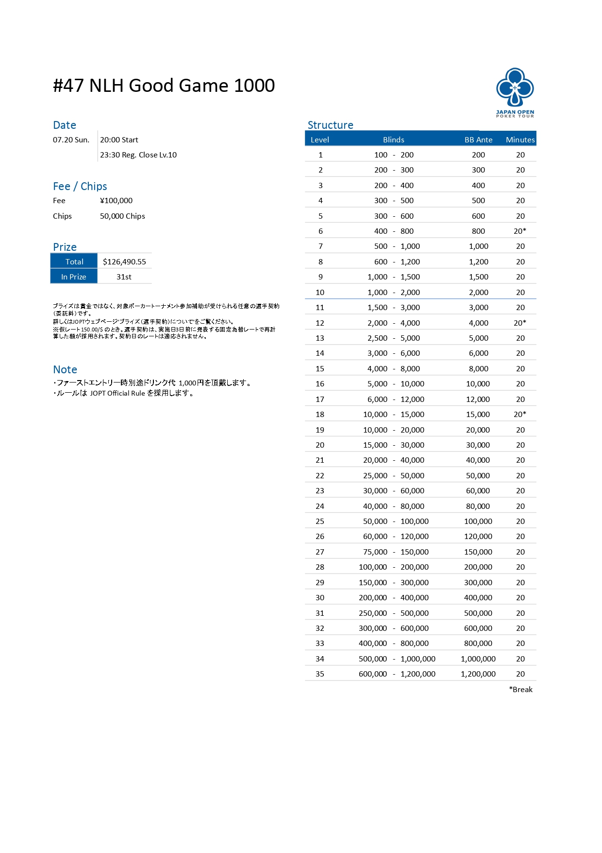 | 店舗名 | JAPAN OPEN POKER TOUR |