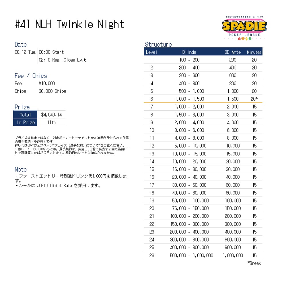 | 12/16(火) | 15:30 | 【♠︎SPADIE】Daily NLH 2K | 秋葉原カジノクエスト |