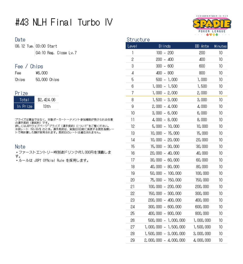 | 12/16(火) | 15:30 | 【♠︎SPADIE】Daily NLH 2K | 秋葉原カジノクエスト |