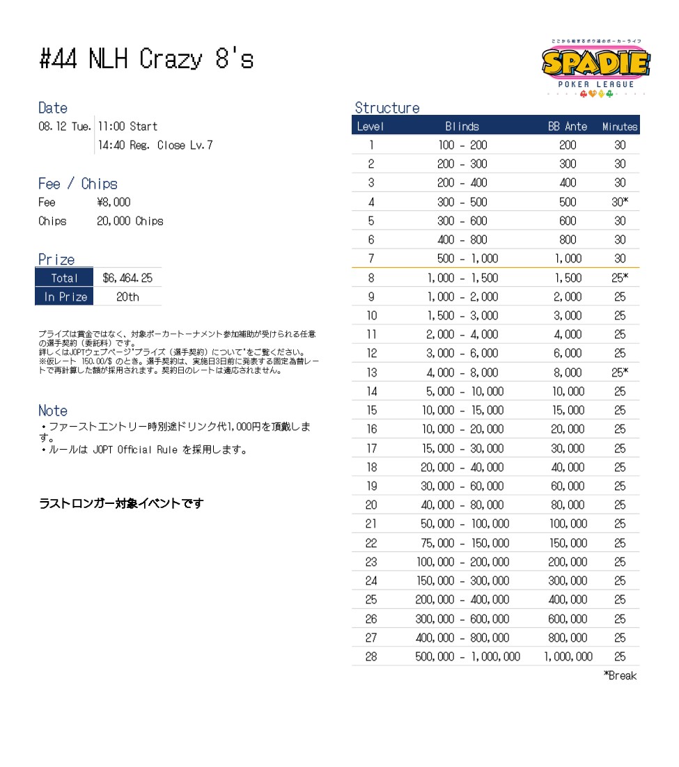 | 12/16(火) | 15:30 | 【♠︎SPADIE】Daily NLH 2K | 秋葉原カジノクエスト |