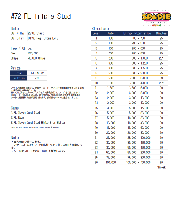 | 公式ページ | https://pokerguild.jp/spadie/ |