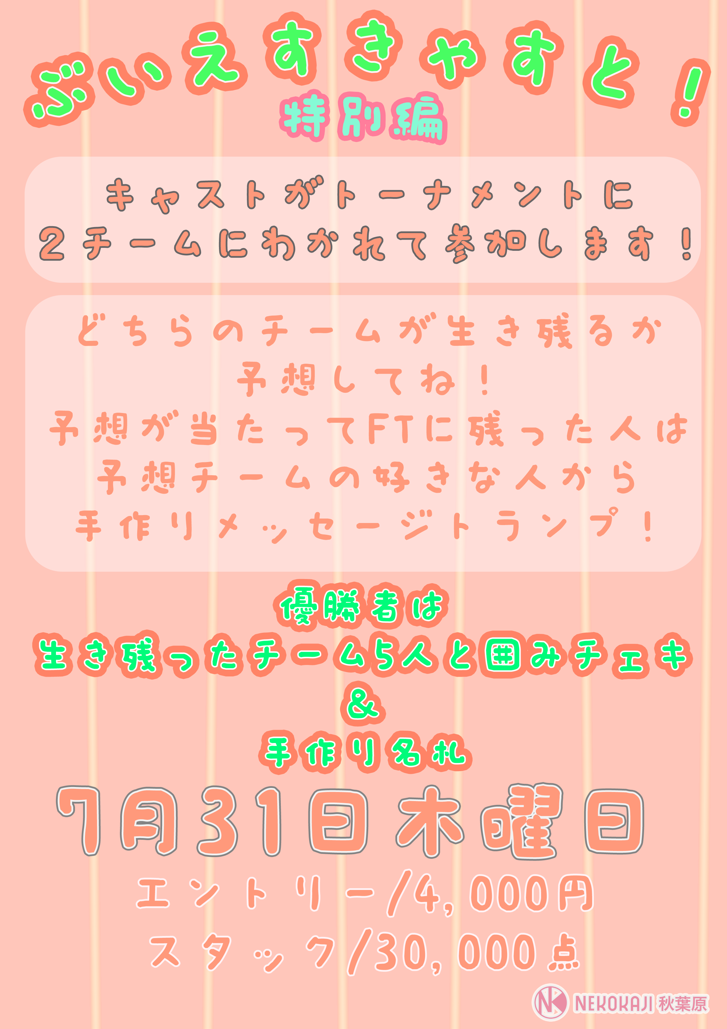 | 12/15(月) | 18:00 | 【♠SPADIE】『平日夜のトーナメント』 | アキバギルド |