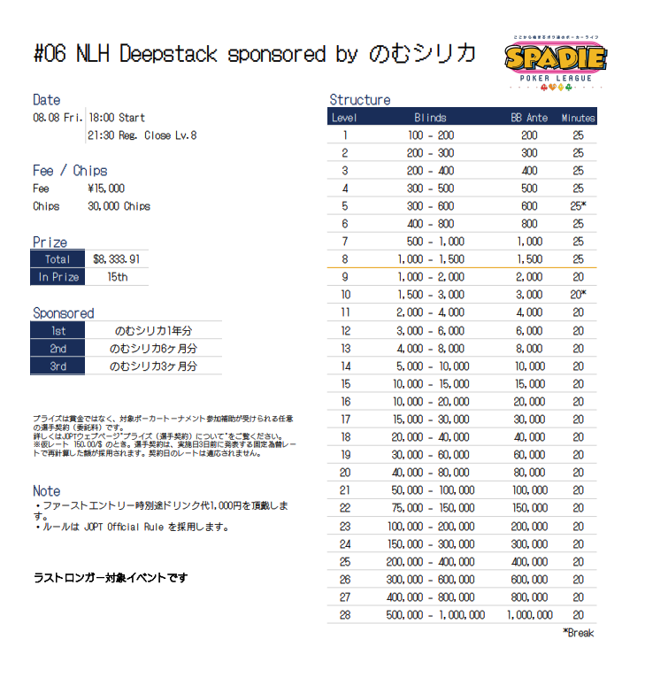 | 12/16(火) | 15:30 | 【♠︎SPADIE】Daily NLH 2K | 秋葉原カジノクエスト |