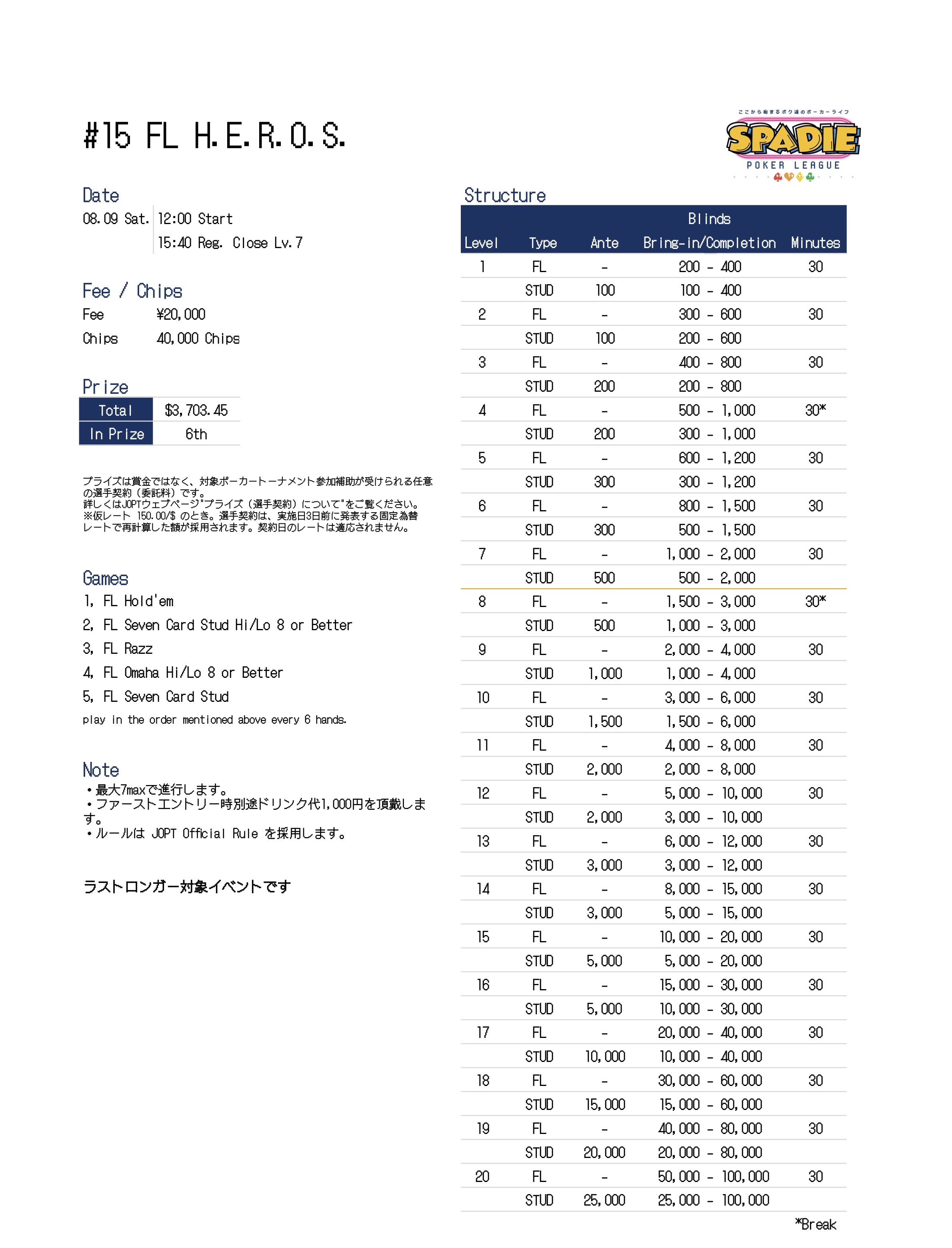 | 12/16(火) | 15:30 | 【♠︎SPADIE】Daily NLH 2K | 秋葉原カジノクエスト |