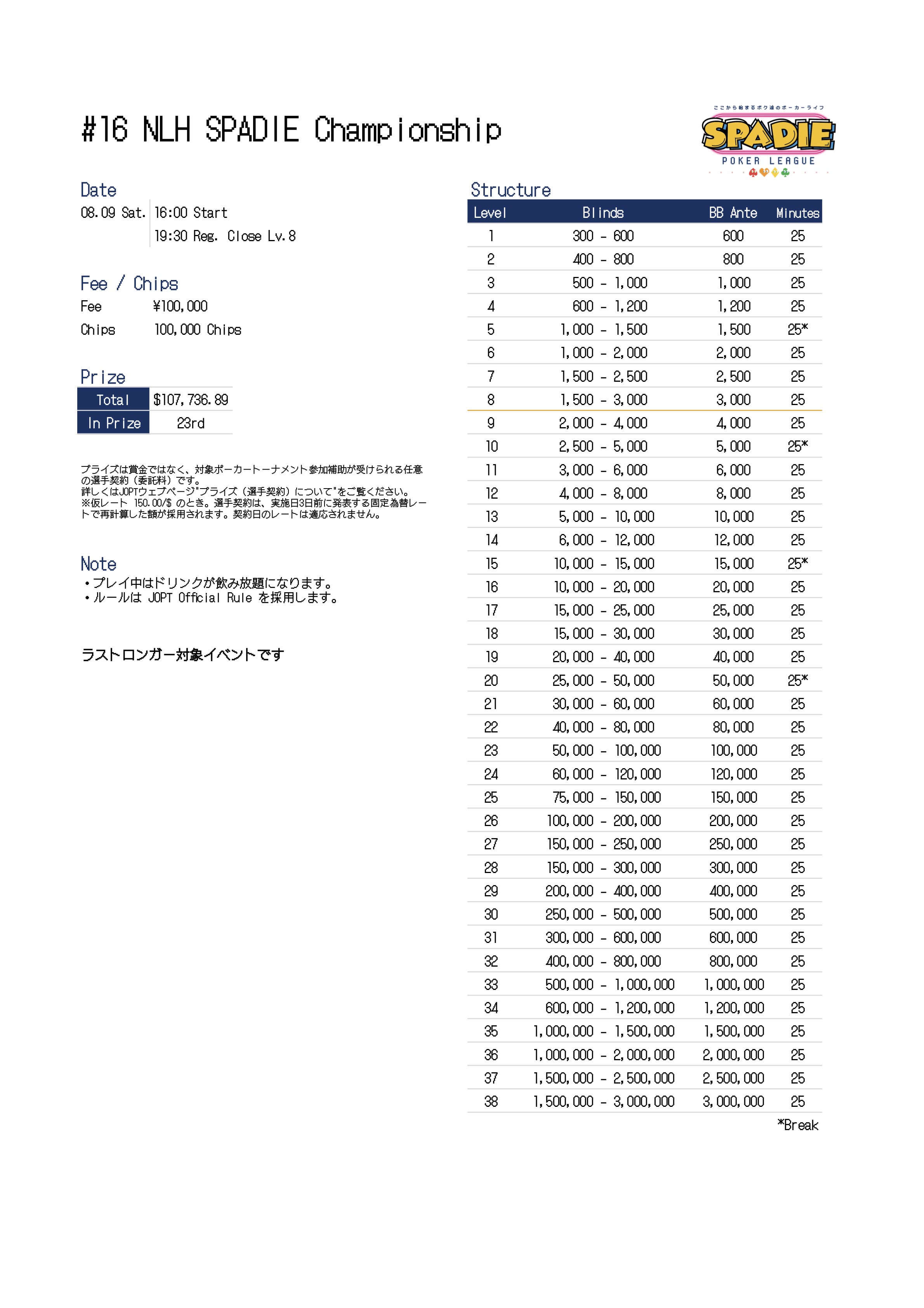 | 12/16(火) | 15:30 | 【♠︎SPADIE】Daily NLH 2K | 秋葉原カジノクエスト |