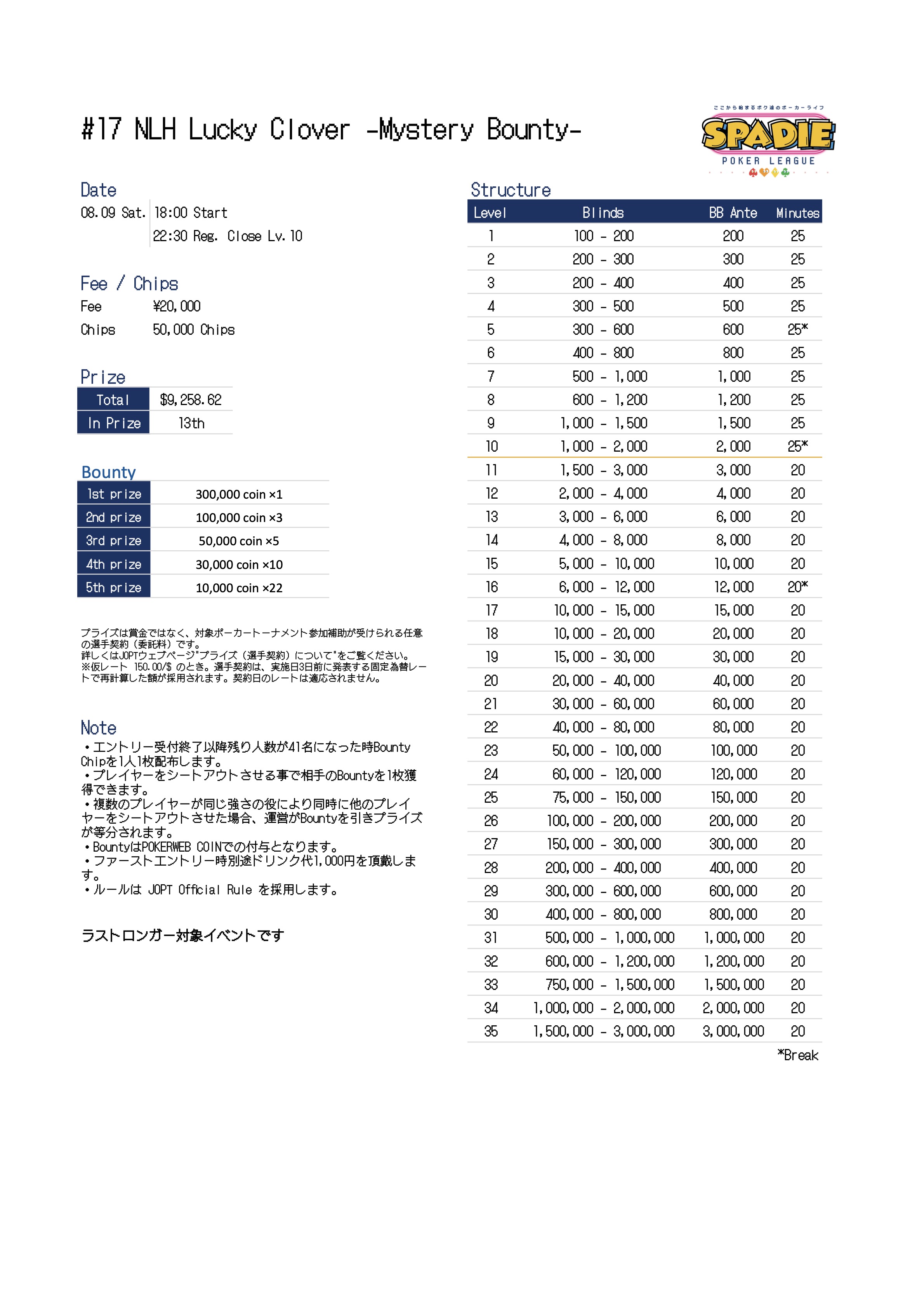 | 店舗名 | JAPAN OPEN POKER TOUR |