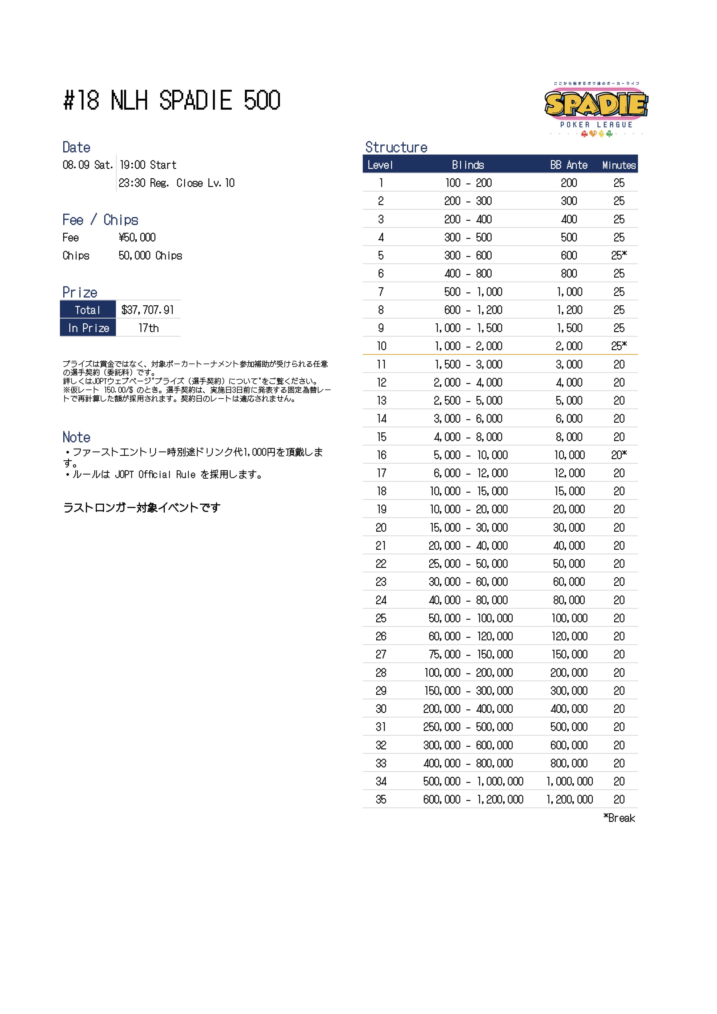| 店舗名 | JAPAN OPEN POKER TOUR |