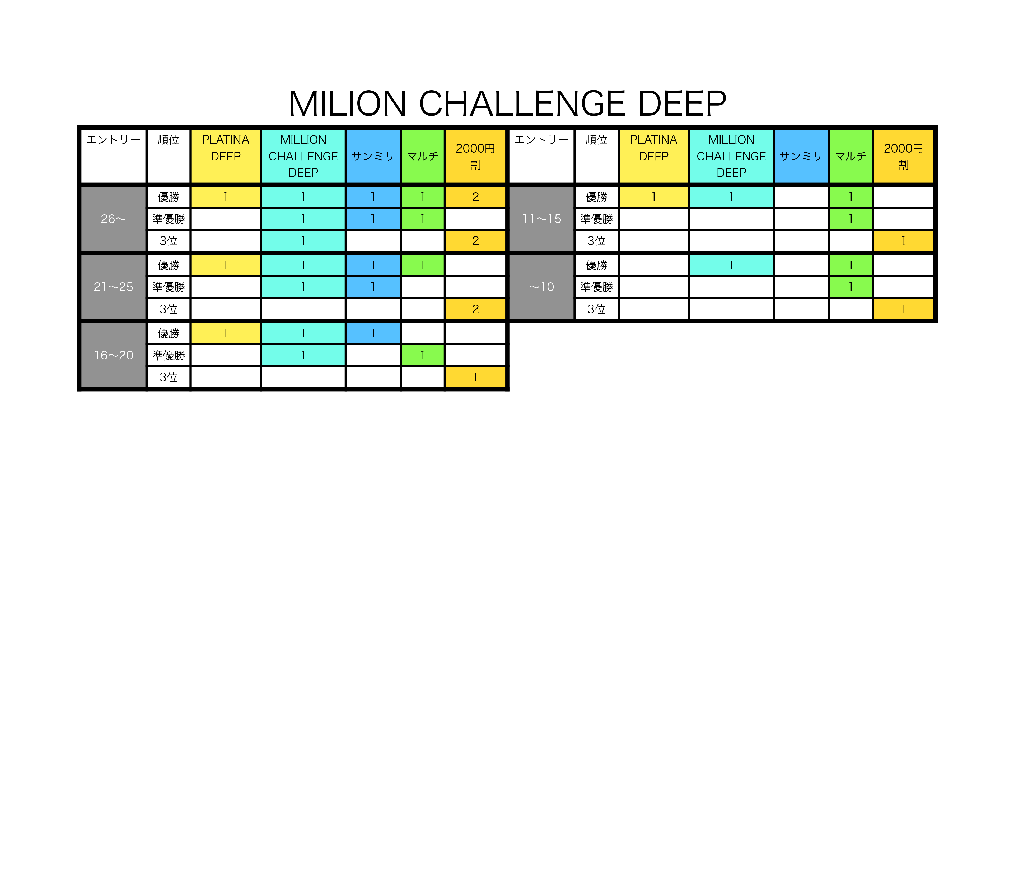 ♡MILLION CHALLENGE DEEPフルスタックシート・・・平日15:00〜開催されるMILLION CHALLENGE DEEPのフルスタック無料券としてご利用いただけます