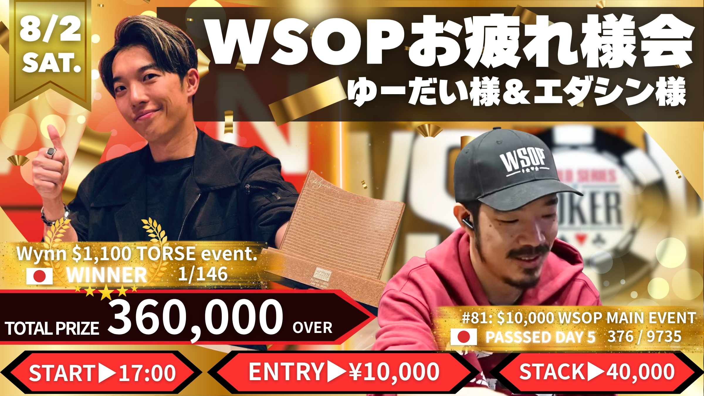 | 12/15(月) | 16:00 | 【JOPT】1000円で参加できる1卓限定 サテライト | EGP EBISU |