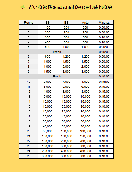| ゲーム | 40,000点 / ノーリミット / テキサスホールデム / 20Min. / 使用しない |