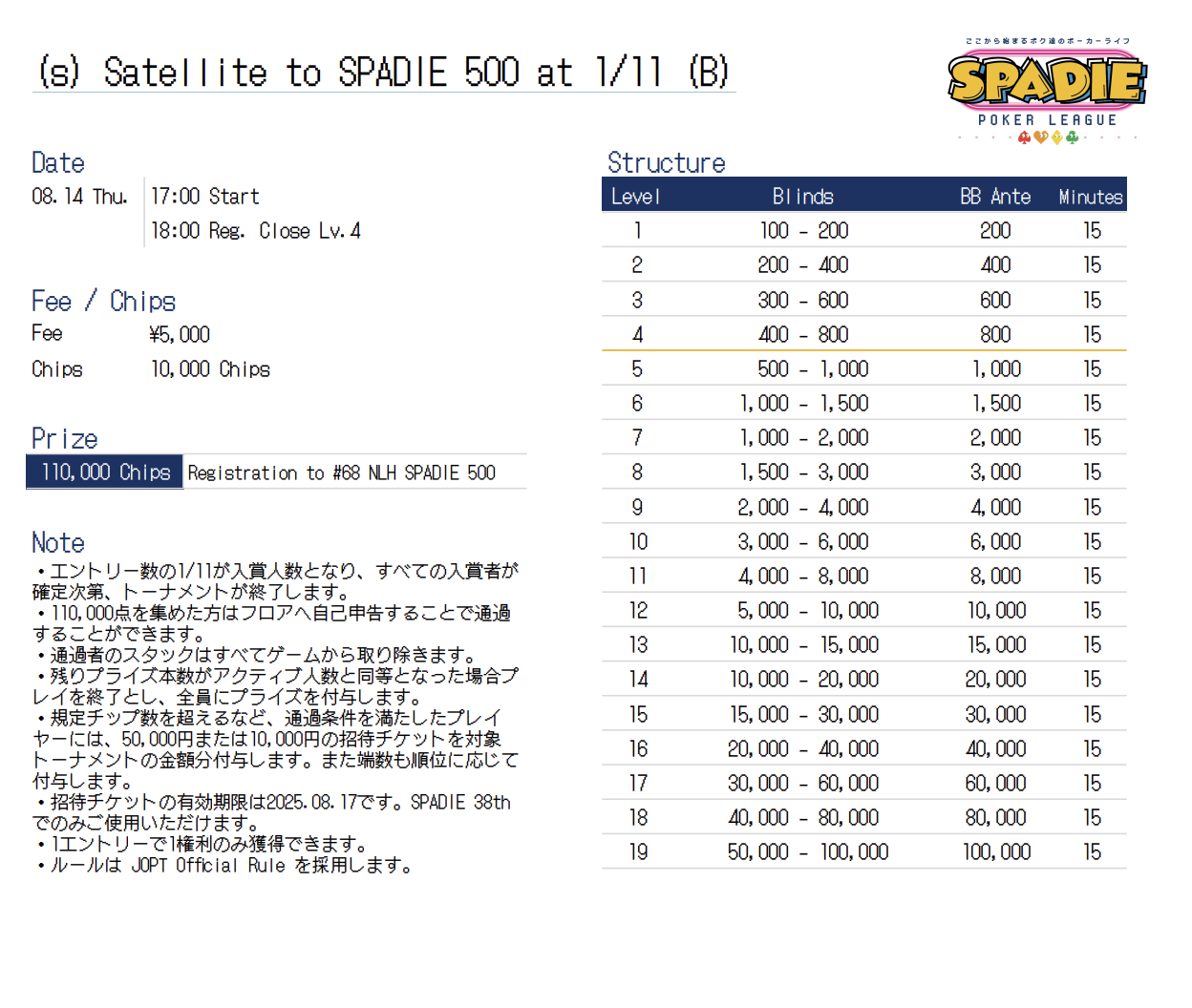 | 公式ページ | https://pokerguild.jp/spadie/ |