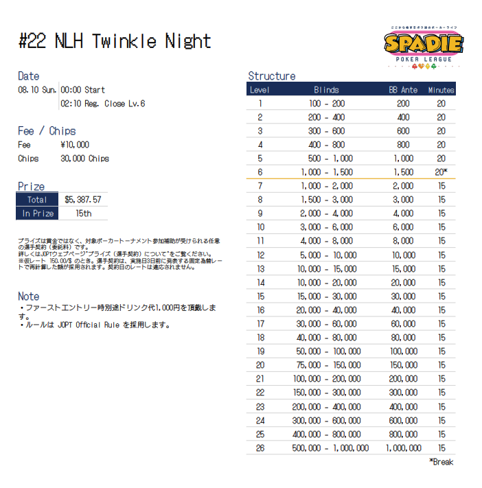| 店舗名 | JAPAN OPEN POKER TOUR |
